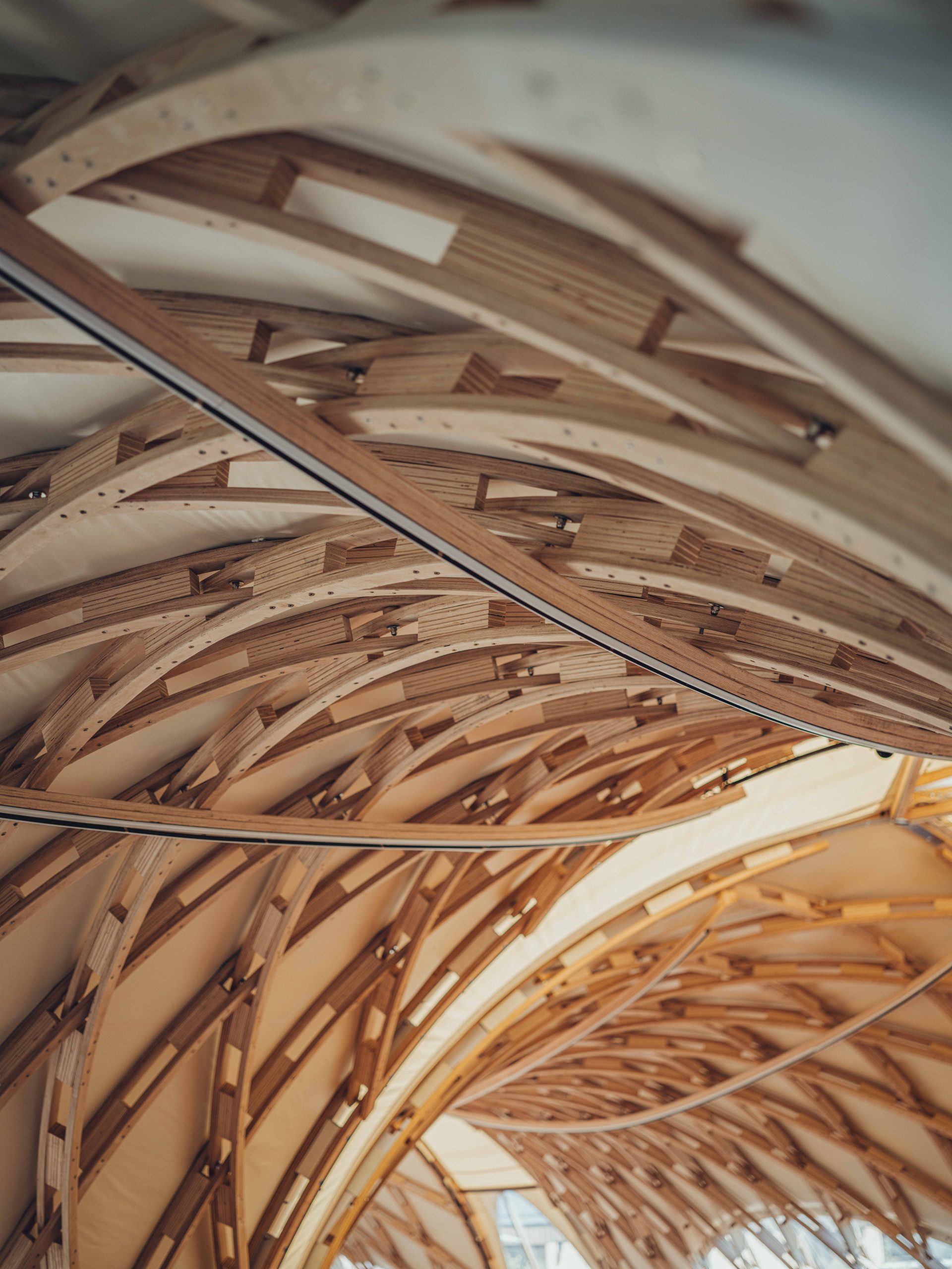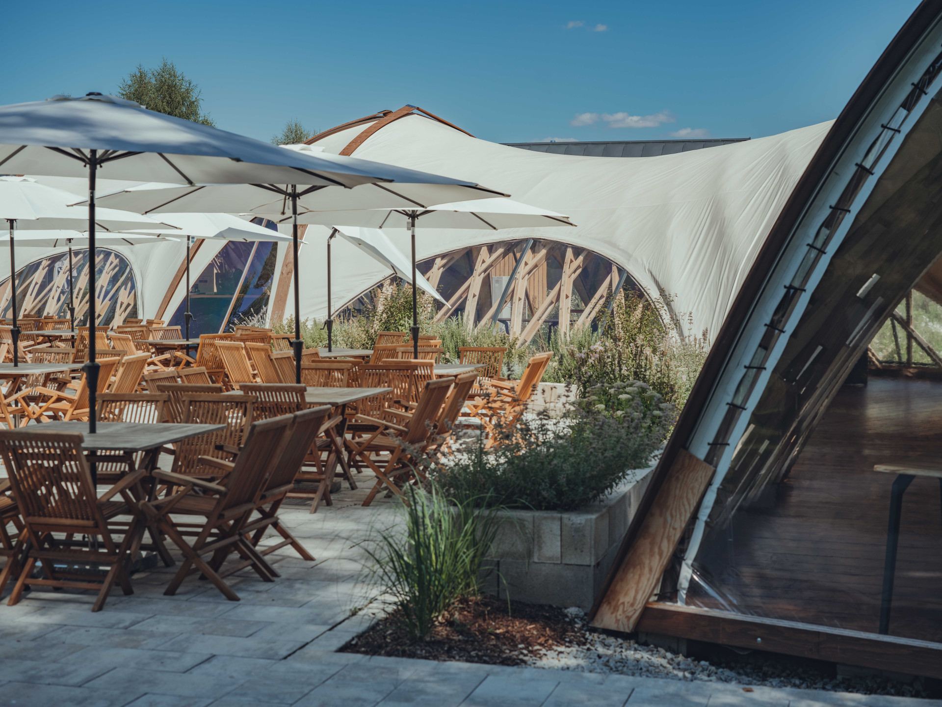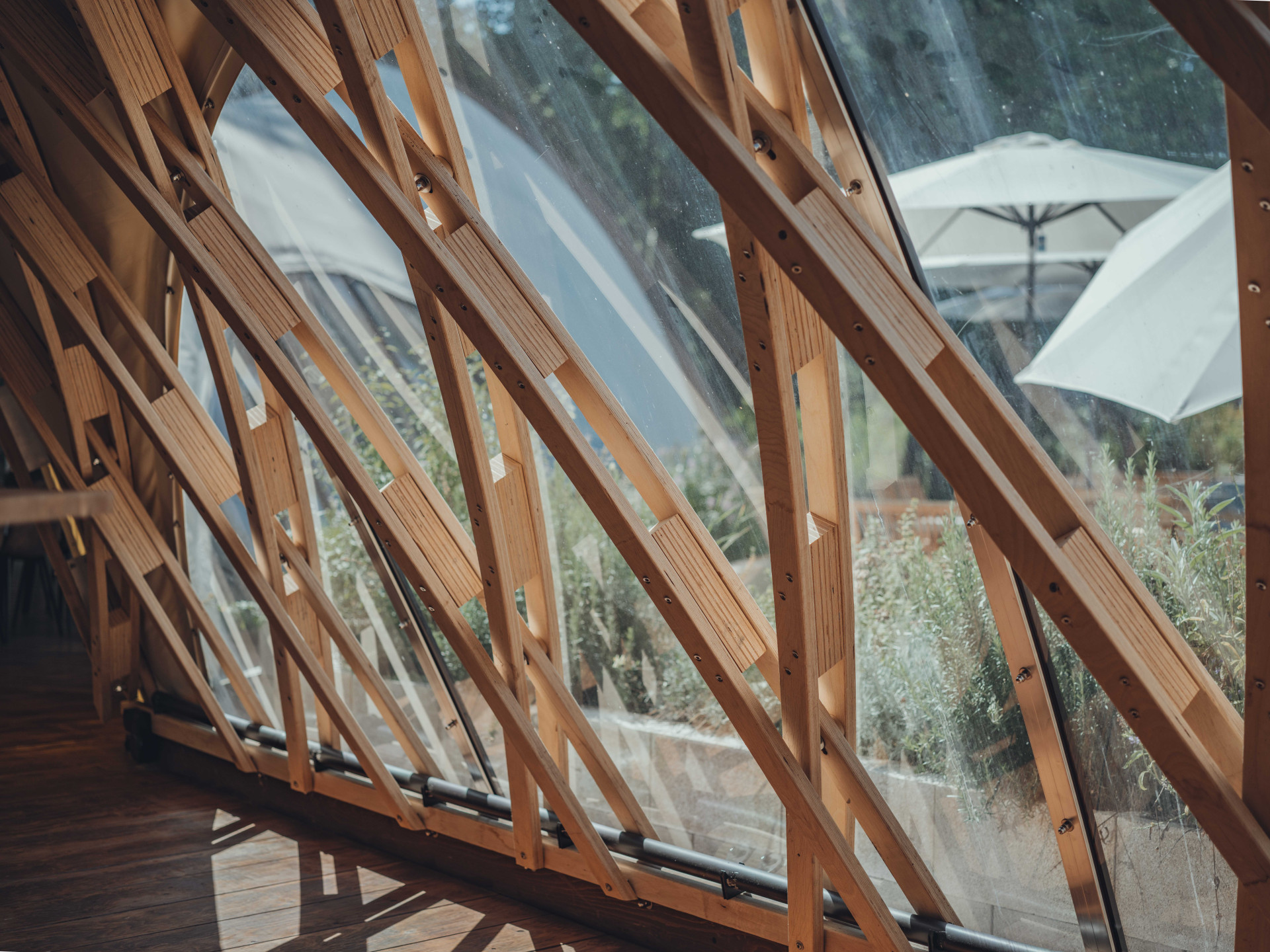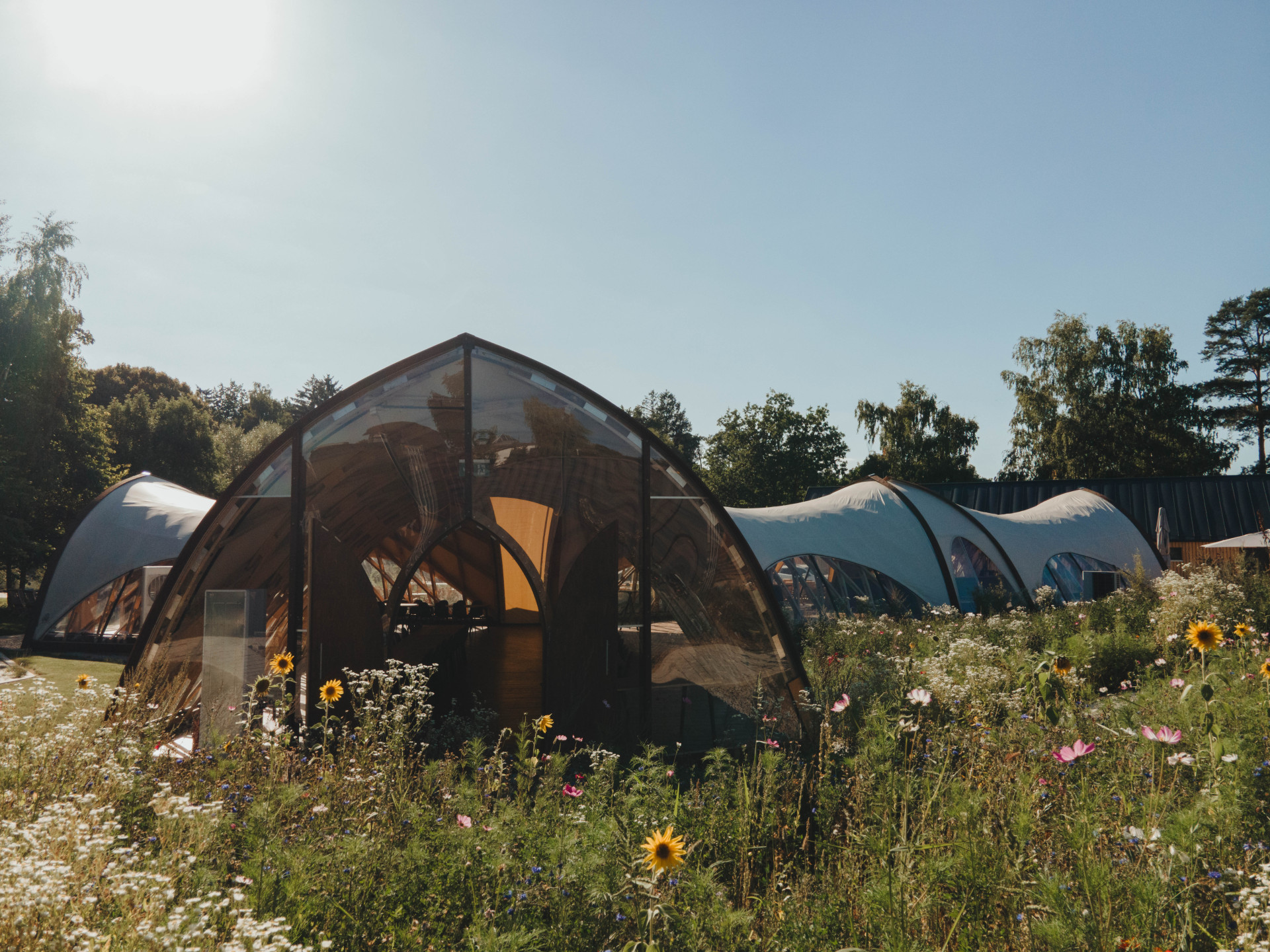 With its striking double timber gridshell and an impressive 330 m² of covered outdoor space, it is the largest and most robust pavilion we have built to date — and the new centerpiece for weddings, concerts, and cultural events that take place all year round.
